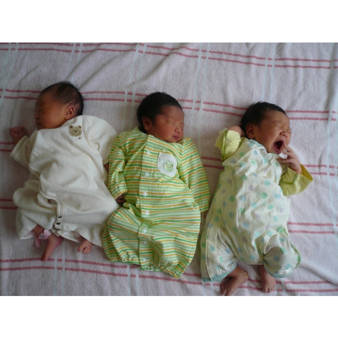 真ん中の赤ちゃん:体重3032gの元気な男の子です☆
