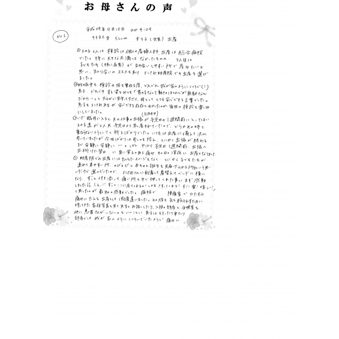 平成29年9月10日に出産されたお母さんの声です☆