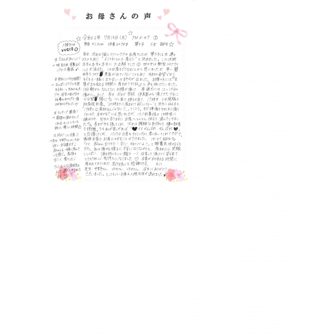 令和2年7月13日に出産されたお母さんの声です☆