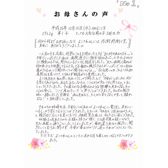☆10月15日に出産されたお母さんの声です☆(1枚目)