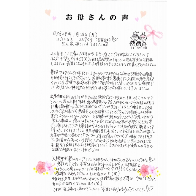 平成28年1月25日に出産されたママの声です☆