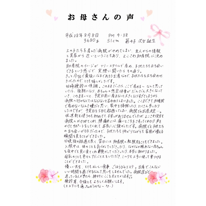 8月8日に出産されたママの声です☆