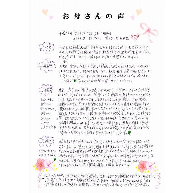 平成28年10月30日に出産されたママの声です☆